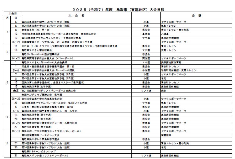 主催:鳥取市バレーボール協会・鳥取市小学生バレーボール連盟・気高町バレーボール協会